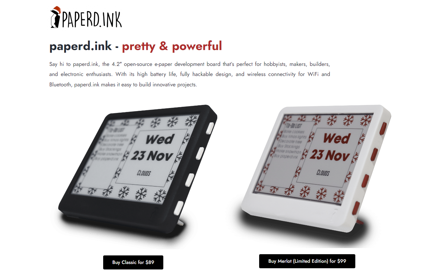 My first impression was that this will require the user to have some knowledge of electronics and programming. It does not come assembled and the instructions are... rather sparse. The screen came pre-loaded with a single line of text telling me to visit docs.paperd.ink to start the set-up.